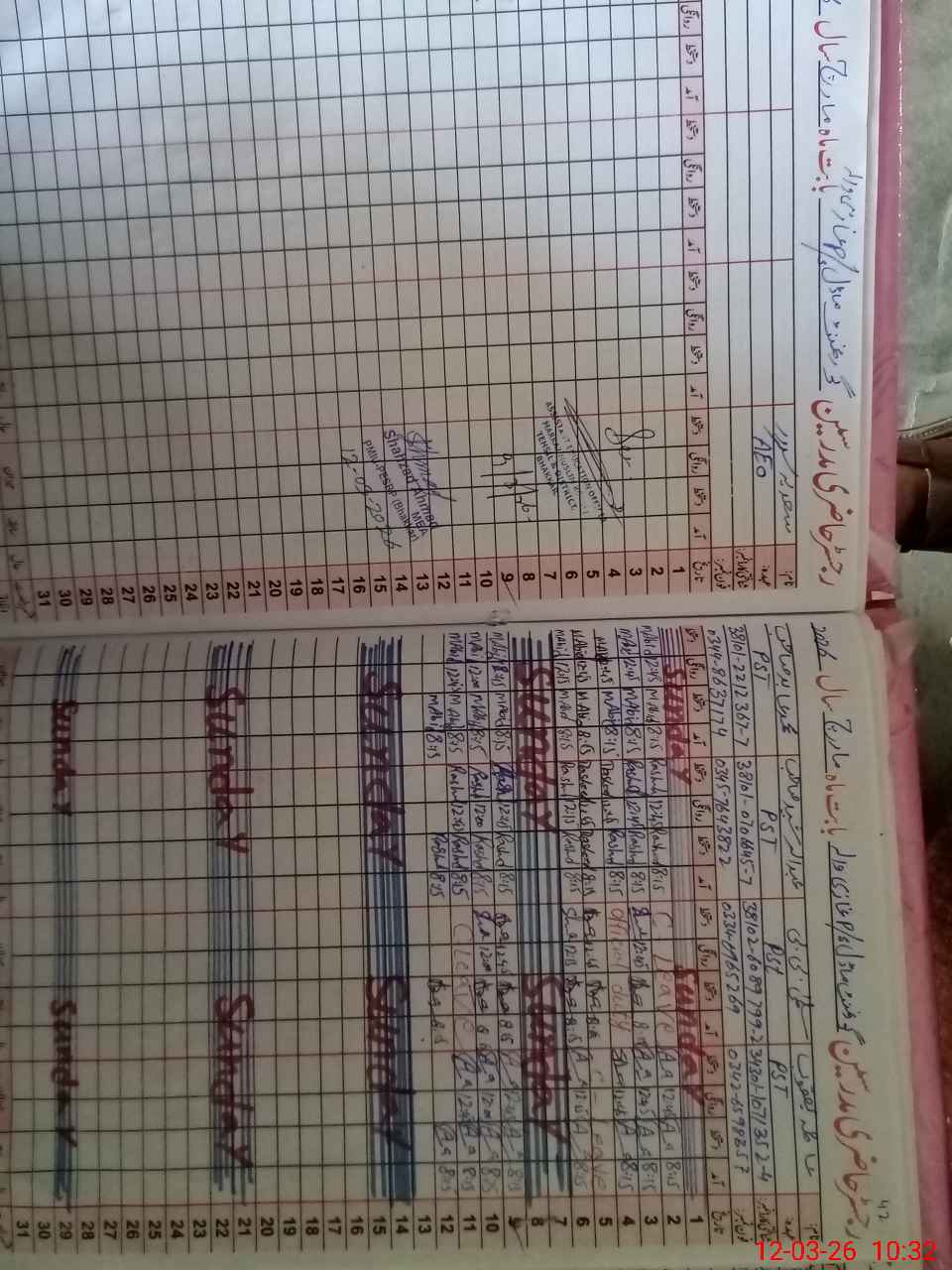 | CNIC | Full Name | Designation | R/C | Absence During Last Calender Month |