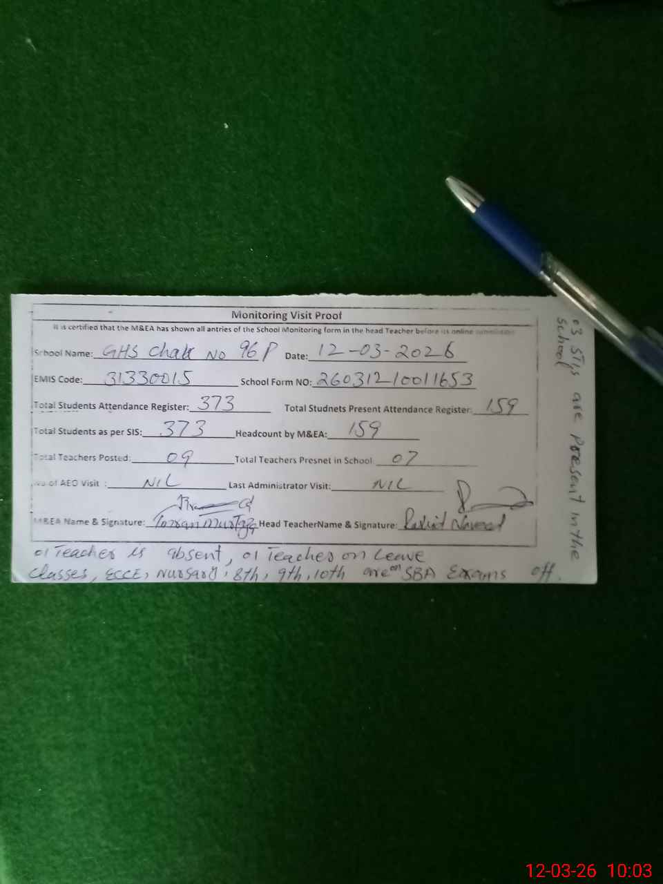 | EMIS Code: 31330015 | Name of School: GHS CHAK 96/P | |||
