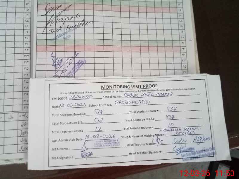 | Attendance Register | Head Teacher | MEA with School | Visit Proof |