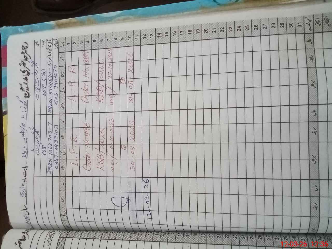 | CNIC | Full Name | Designation | R/C | Absence During Last Calender Month |