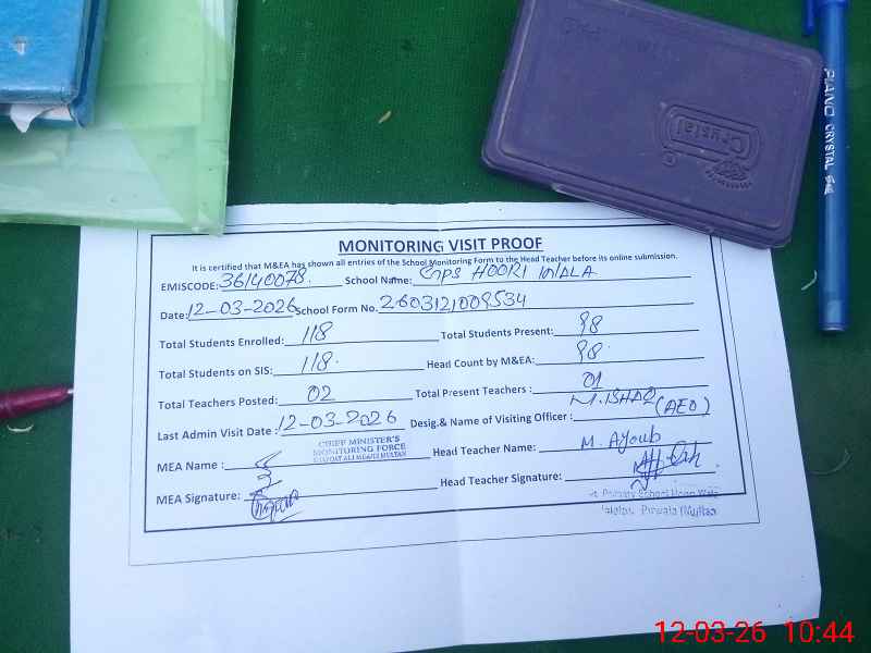 | EMIS Code: 36140078 | Name of School: GPS HOORI WALA | |||