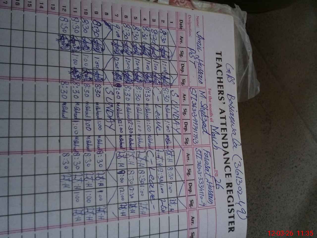 | Name: AA**** HU**** Designation: (School Headmaster's/Headmistress's) HEADMASTER Phone/Cell Number: 03**** |
