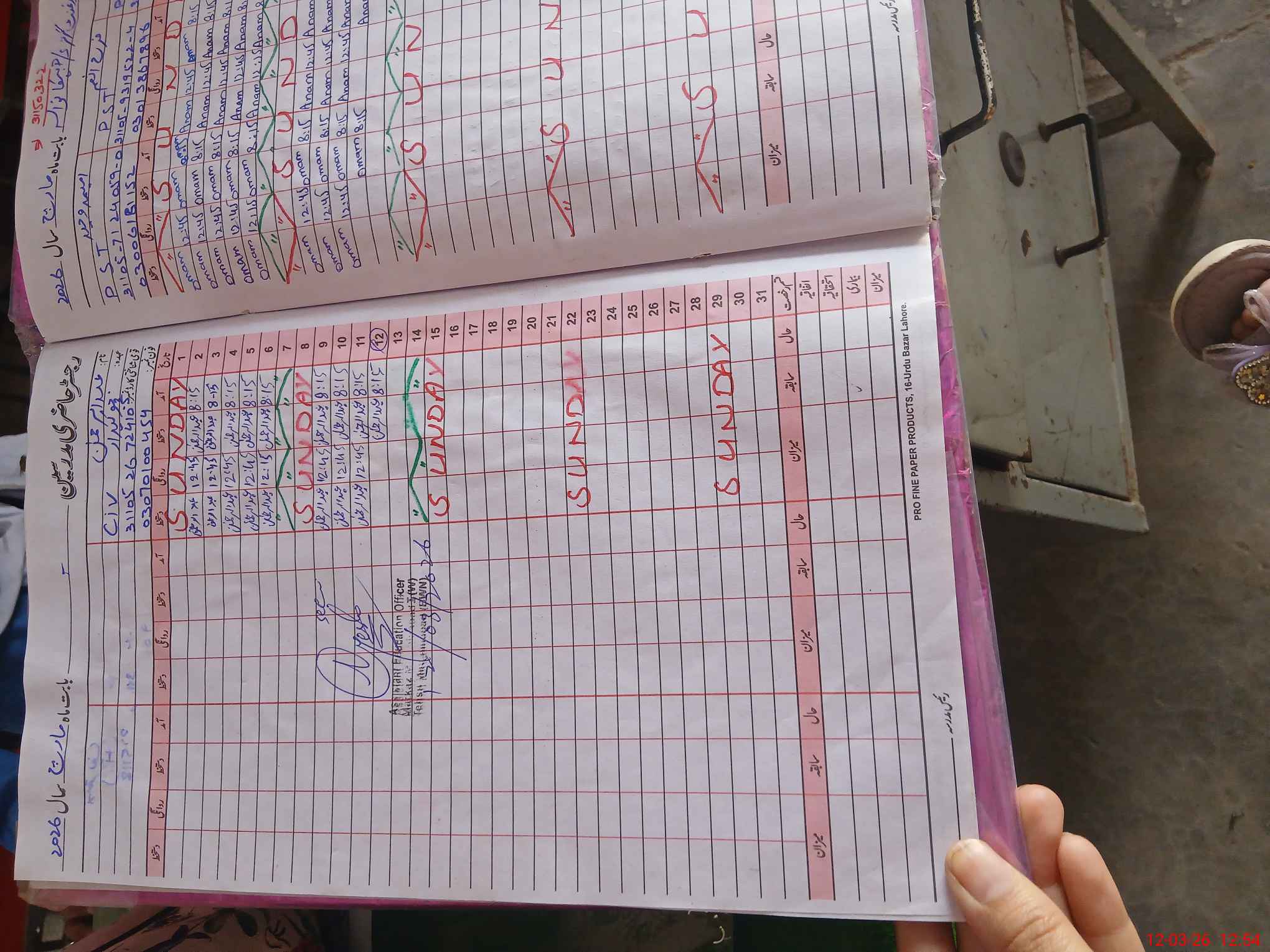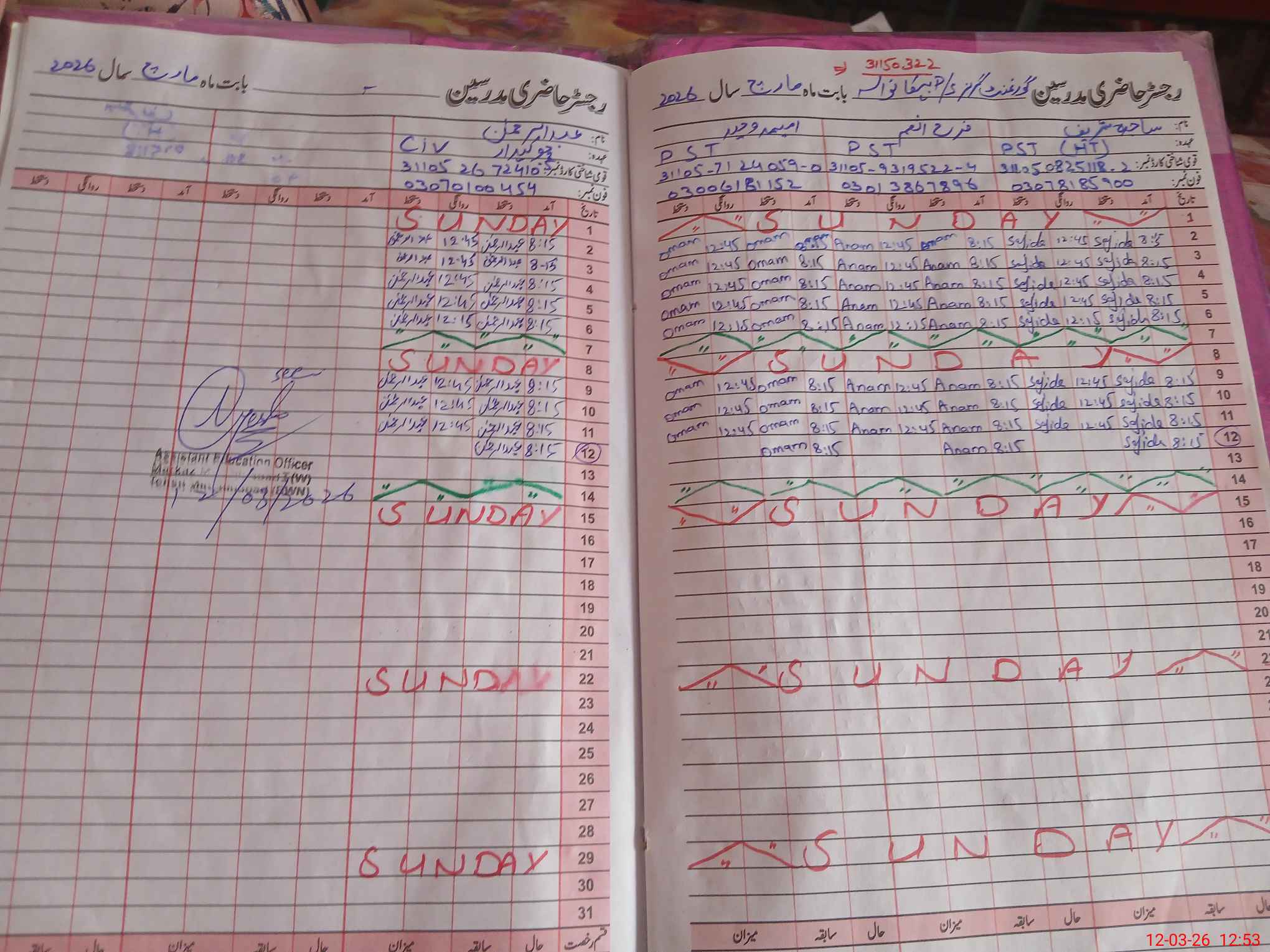 | Name: SA**** SH**** Designation: (School Headmaster's/Headmistress's) PST Phone/Cell Number: 03**** |