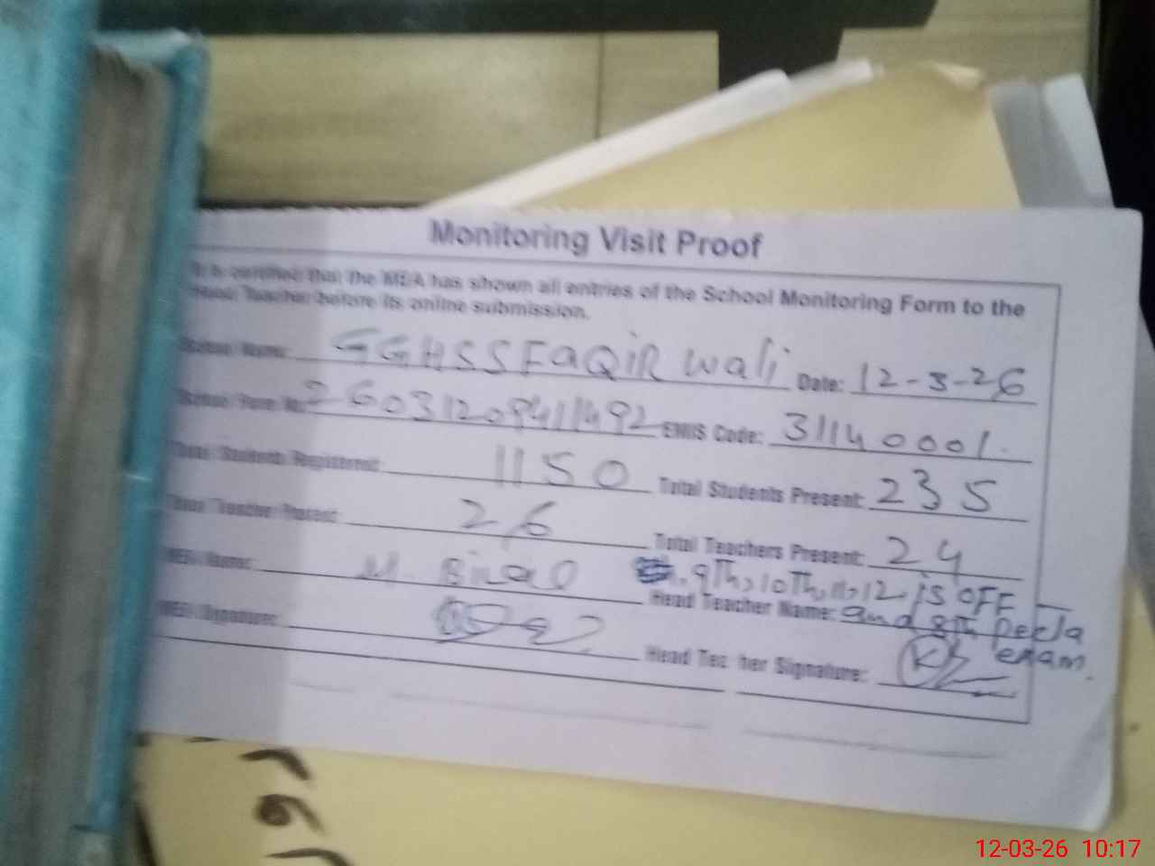 | EMIS Code: 31140001 | Name of School: GGHSS FAQIR WALI | |||