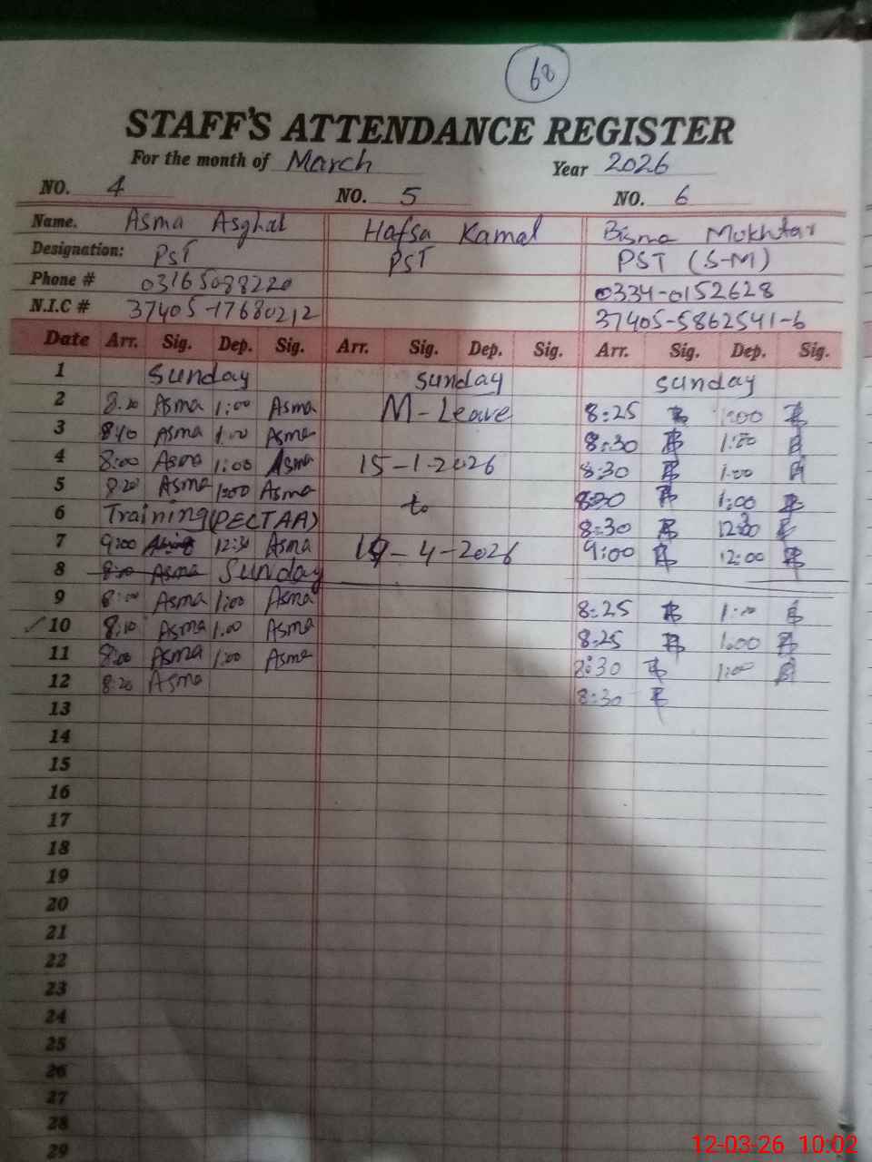 | 37**** | Ha**** Ka**** | PST Science/Maths | Regular | 0 | 0 | 0 | 0 | 0 | 0 | 0 | 0 | 0 | Maternity |