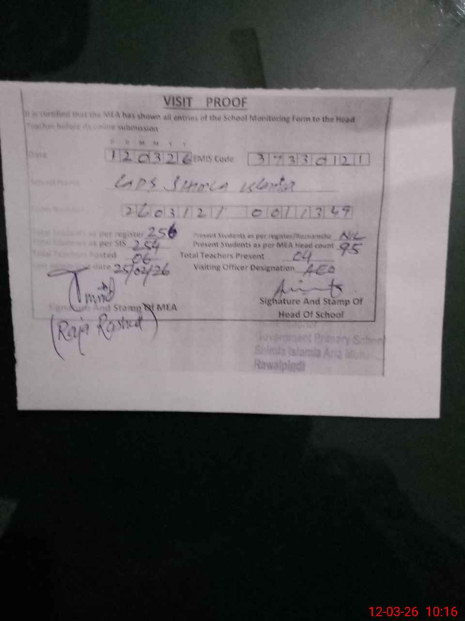 | EMIS Code: 37330121 | Name of School: GPS SHIMLA ISLAMIA RWP | |||