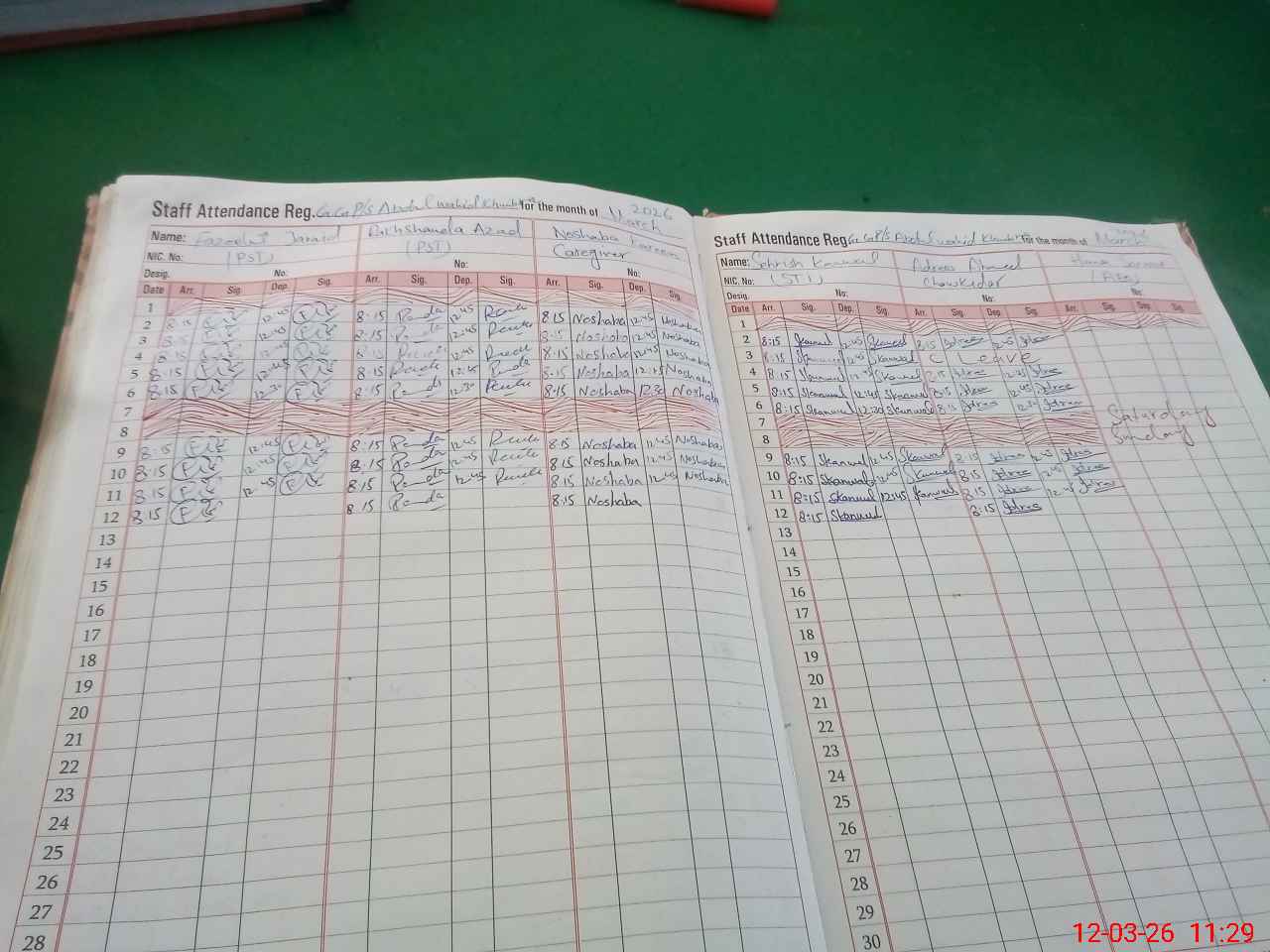 | CNIC | Full Name | Designation | R/C | Absence During Last Calender Month |