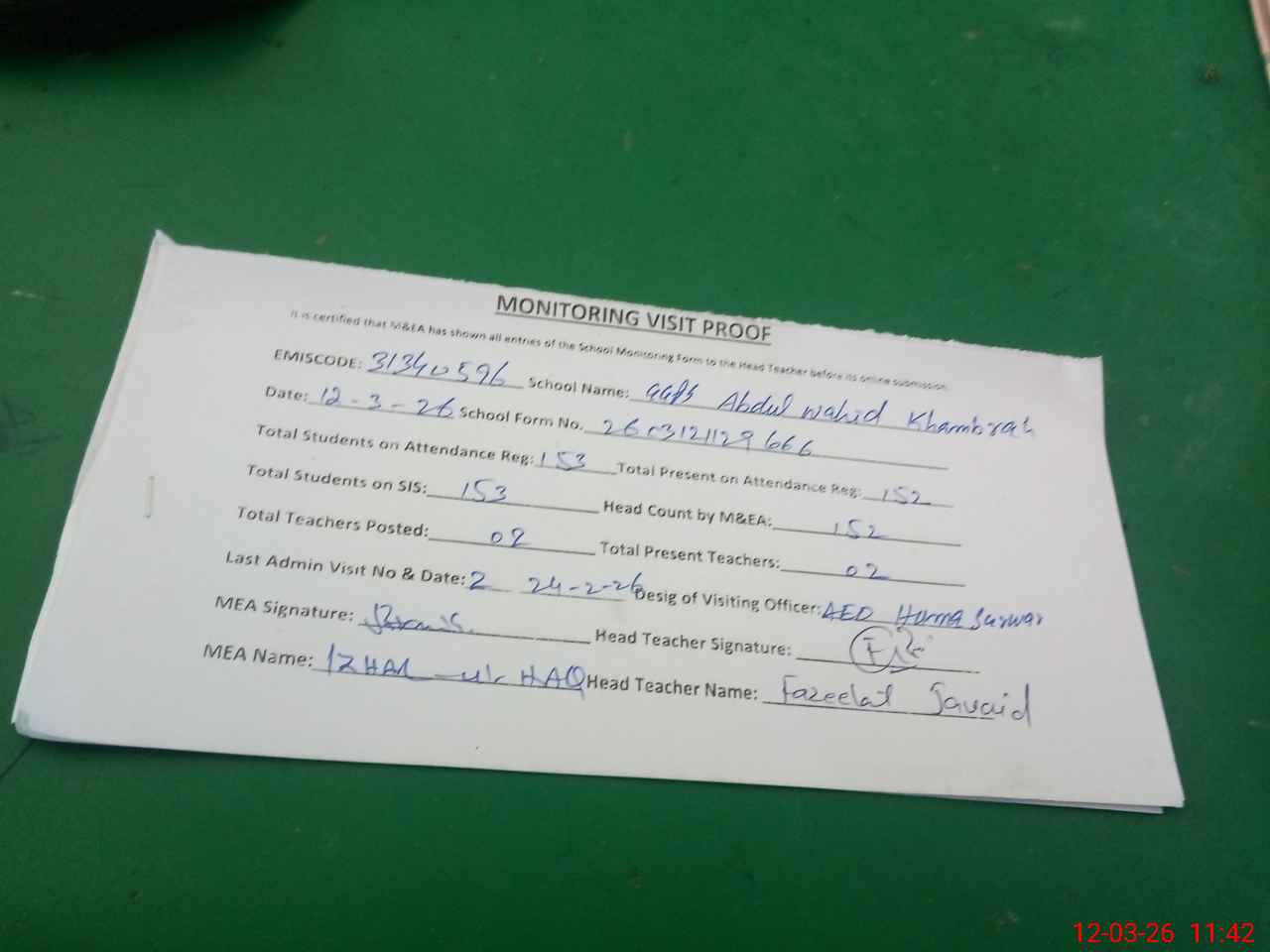 | EMIS Code: 31340596 | Name of School: GGPS ABDUL WAHID KHUMBHRA | |||