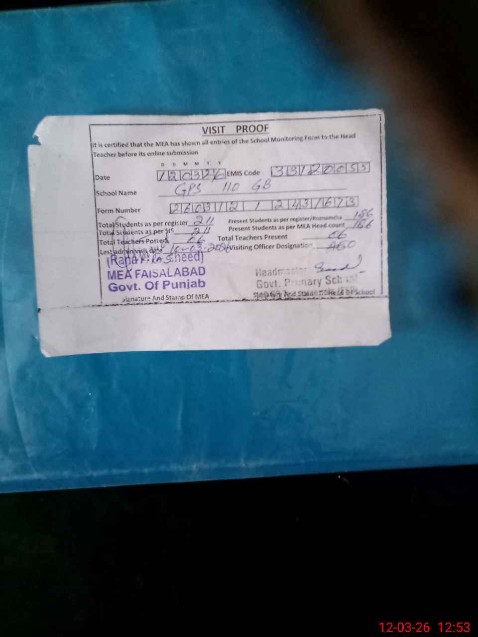 | EMIS Code: 33120055 | Name of School: GPS CHAK 110 GB 66 GB TEH JARANWALA FSD | |||