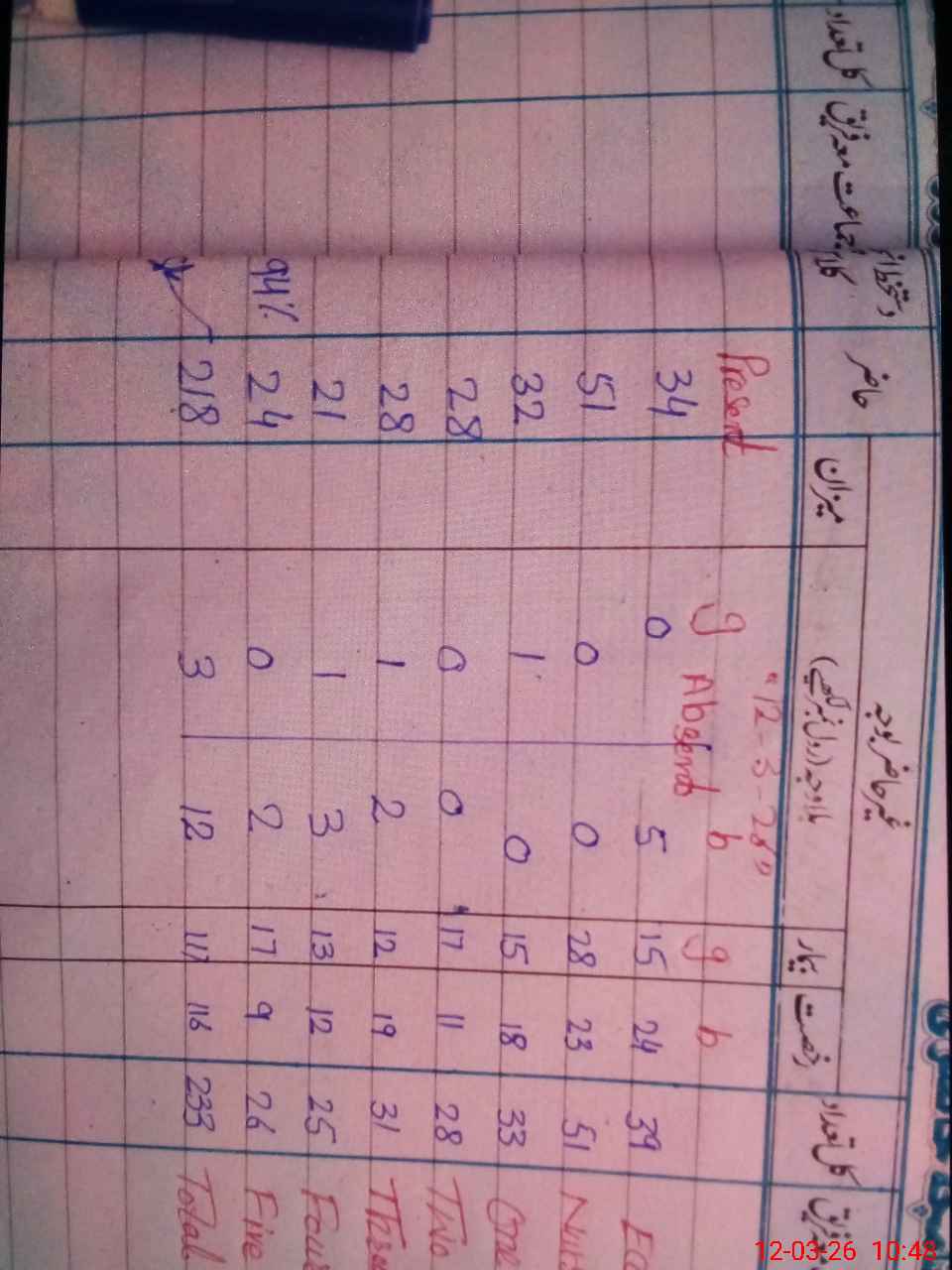 | Total Students Present | 0 | 34 | 32 | 28 | 28 | 22 | 24 | 219 | ||||||||