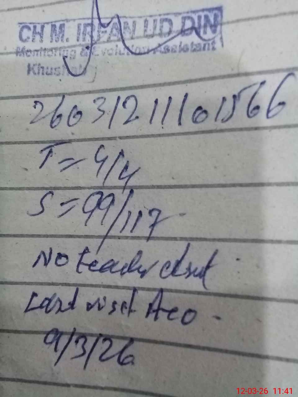 | Remarks (Use Separate Page if Required): gps railwastation quaudabad student on sis 117 student on register 117 head count 99 no teacher absent last visit aeo 9/3/26 30 student bench required ece furniture required boundary wall repair needed | |||||