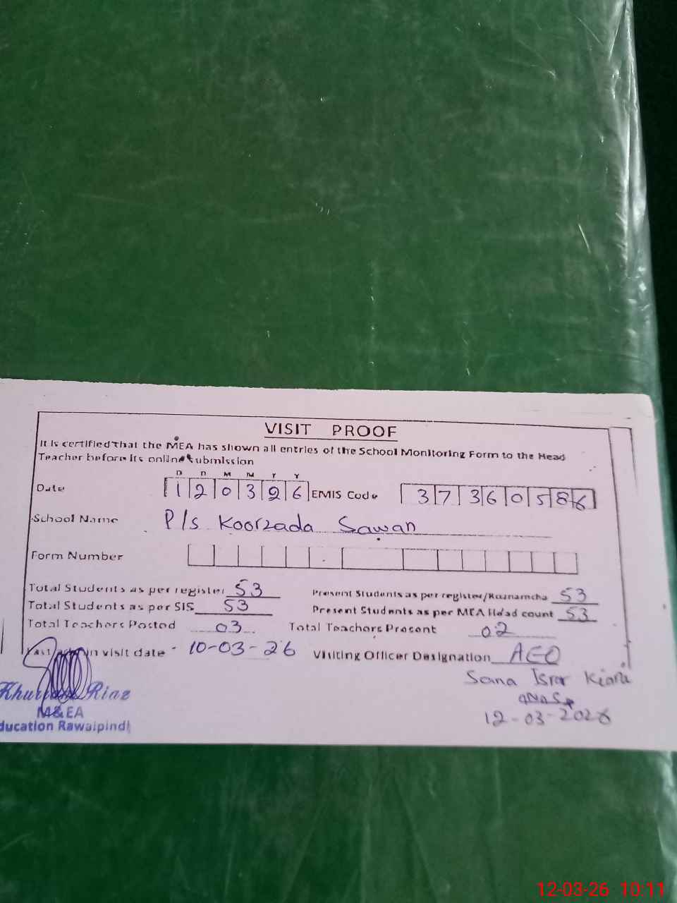 | EMIS Code: 37360586 | Name of School: GGPS KORZADA SAWAN | |||