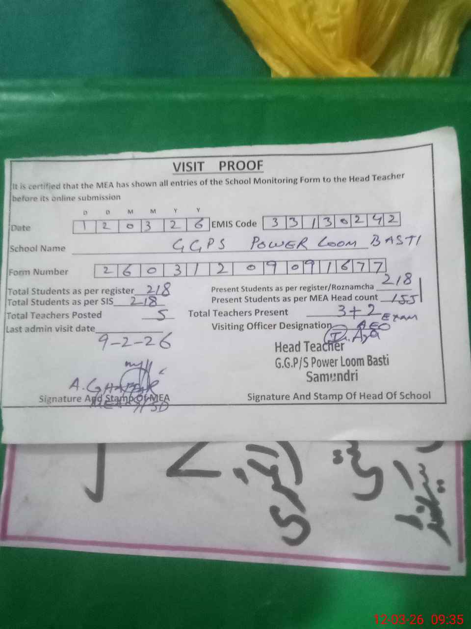 | EMIS Code: 33130242 | Name of School: GGPS POWER LOOM BASTI SAMUNDRI | |||
