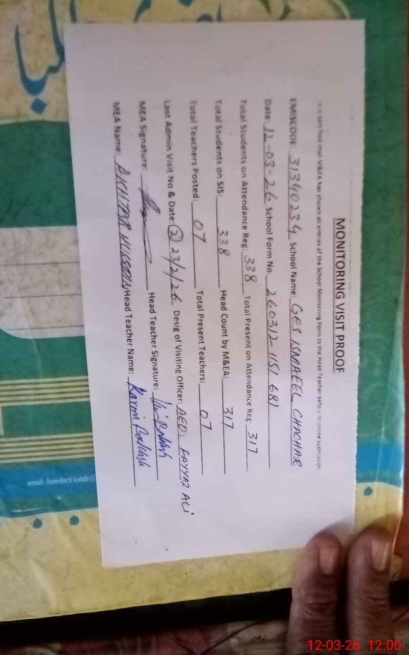 | EMIS Code: 31340234 | Name of School: GES ISMAEEL CHACHAR | |||