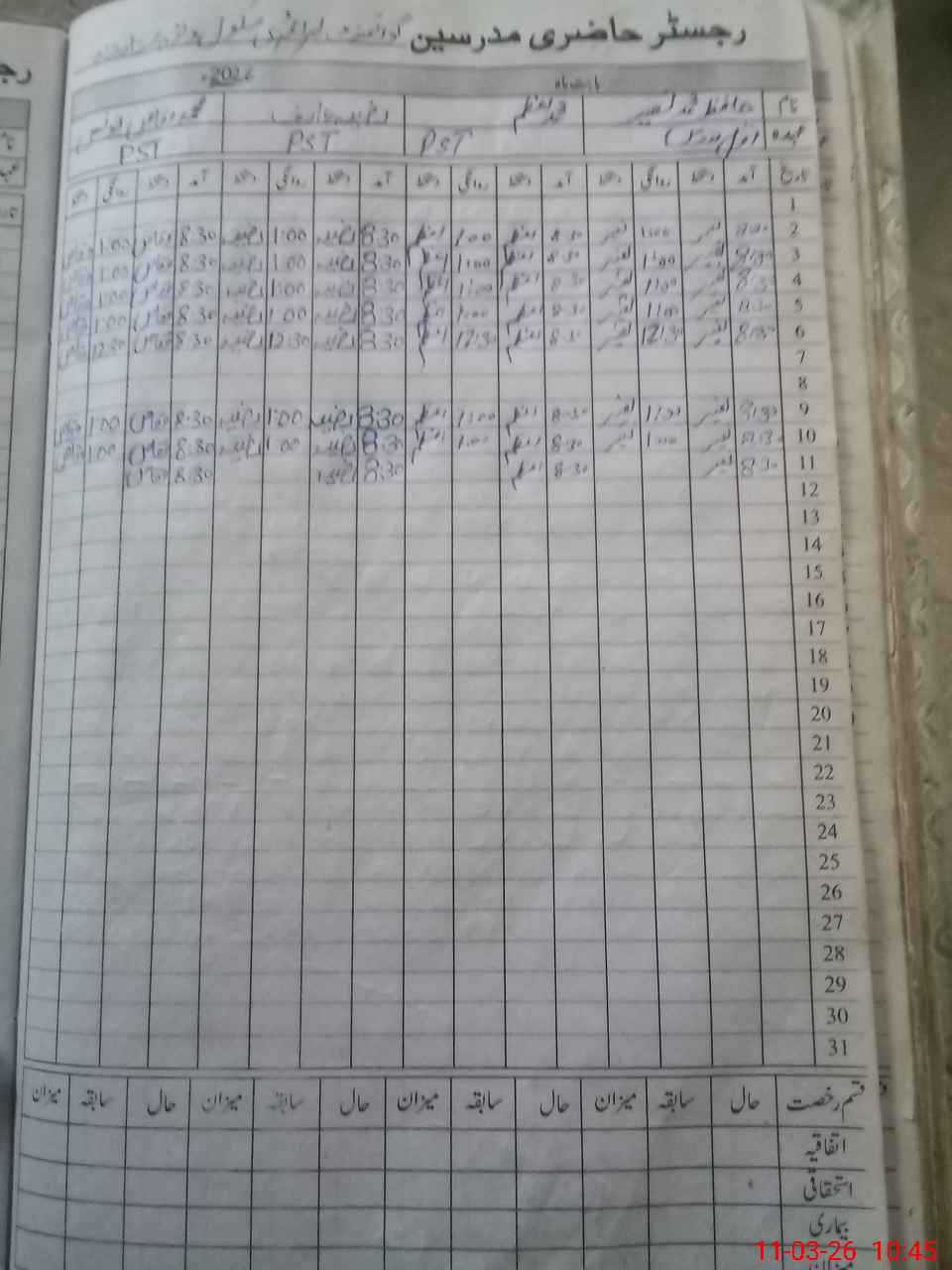 | 61**** | Mu**** Am**** Kh**** | Temporary | 2 | 0 | 0 | 0 | 0 | 0 | 0 | 0 | 2 | Absent (Un-Authorized) | |