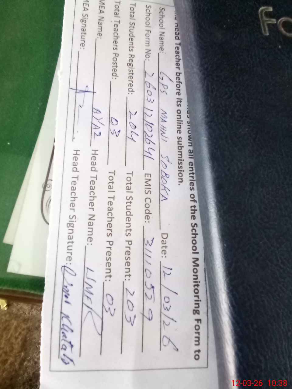 | EMIS Code: 31110529 | Name of School: GPS MAHNI SABOOKA | |||