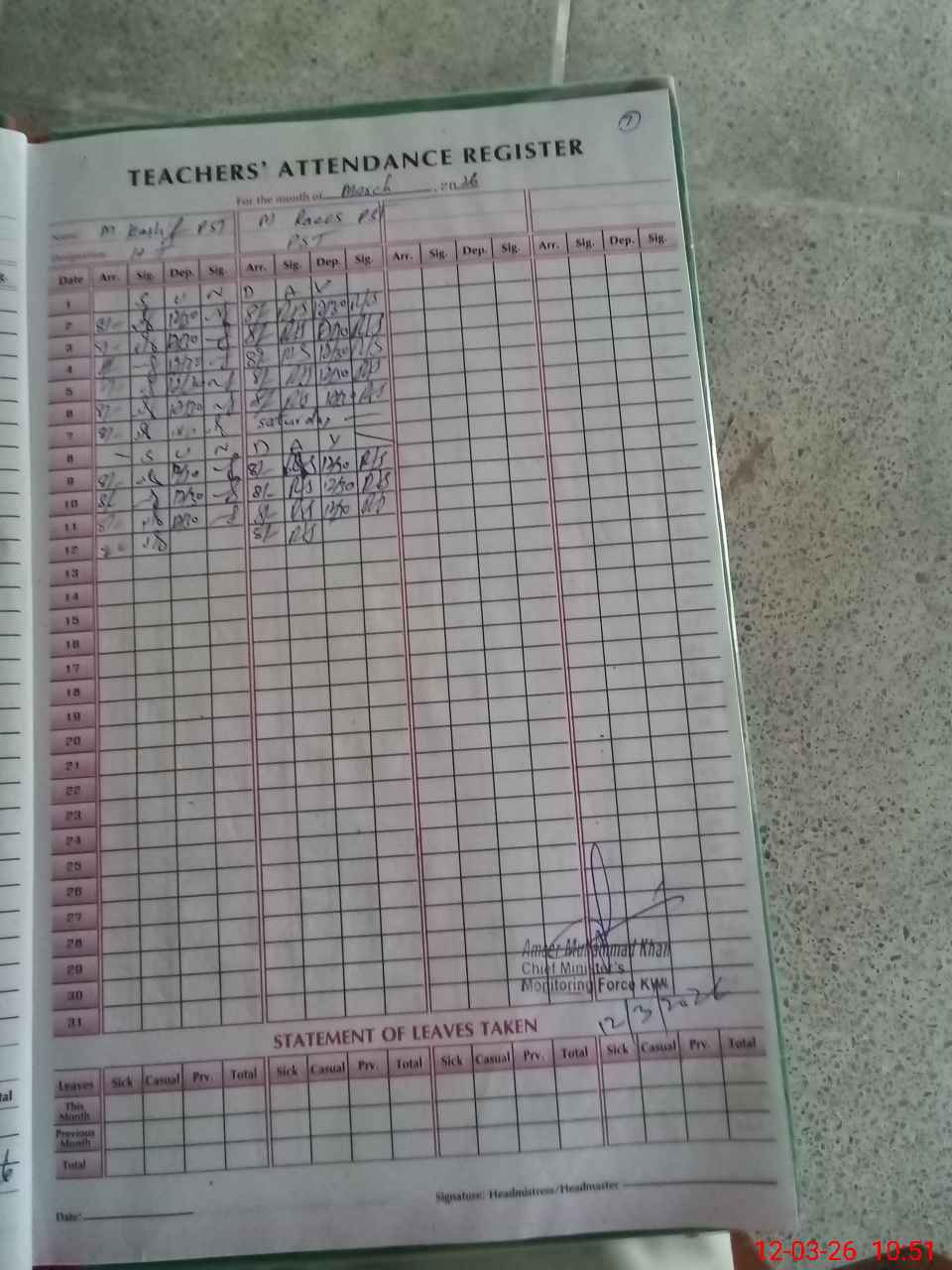 | Monitoring Date: 12-03-2026 | Start Time: 12-03-2026 10:30 AM | End Time: 12-03-2026 10:59 AM | Name of MEA: Am**** Mu**** Kh**** | |