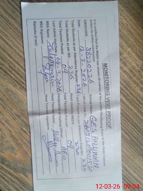 | EMIS Code: 38220226 | Name of School: GES PALUWAN | |||