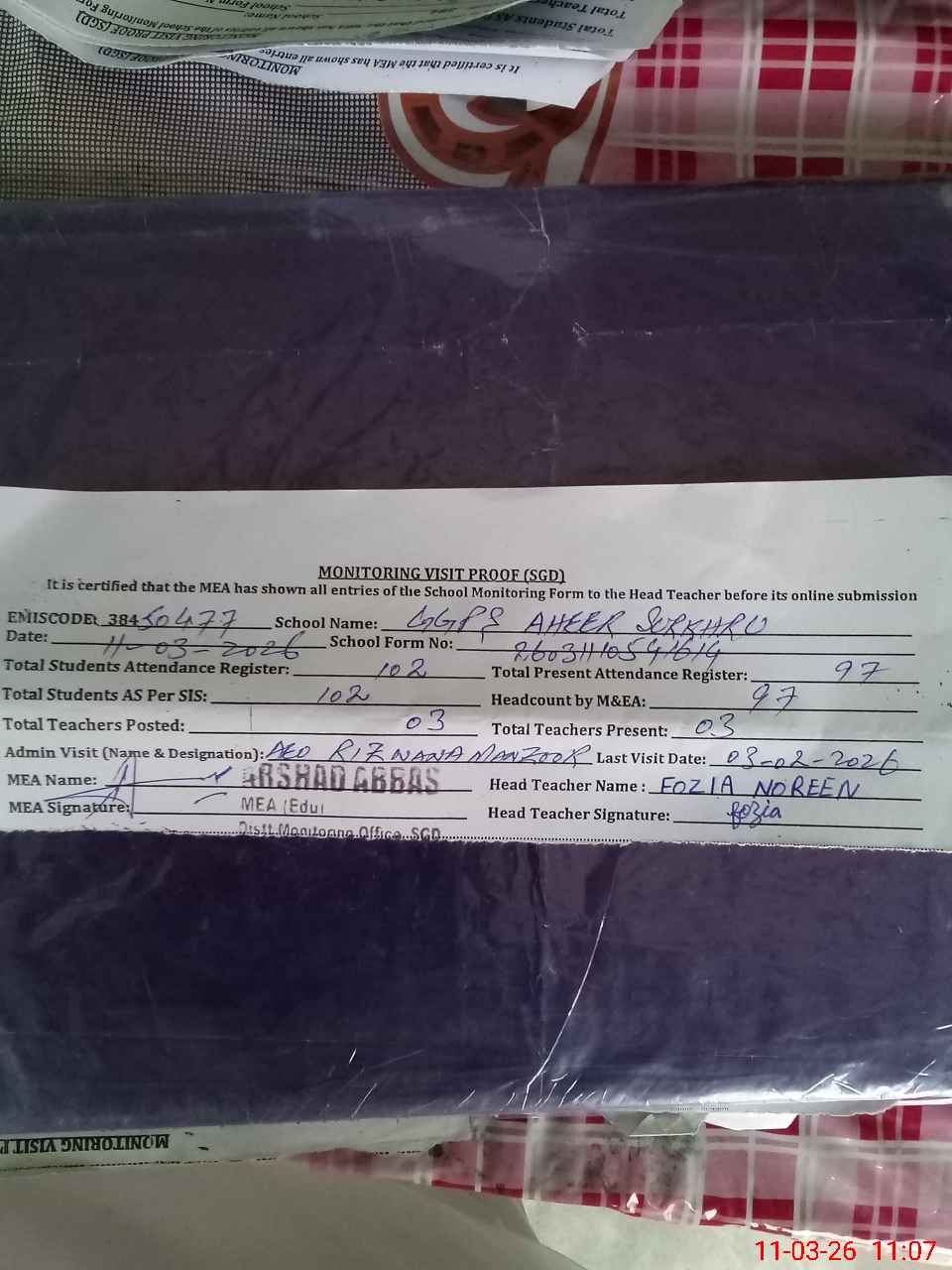 | EMIS Code: 38450477 | Name of School: GGPS AHEER SURKHRU | |||
