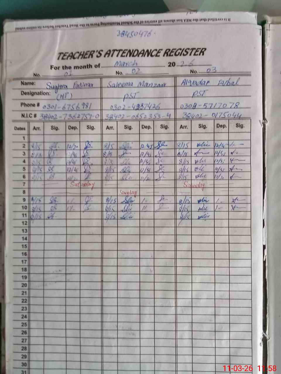 | Name: SU**** FA**** Designation: (School Headmaster's/Headmistress's) PST Phone/Cell Number: 03**** |