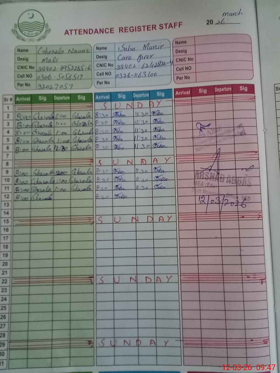 | 38**** | Az**** Pa**** | PST Arts | Regular | 0 | 0 | 0 | 0 | 0 | 0 | 0 | 0 | 0 | Exam Duty |