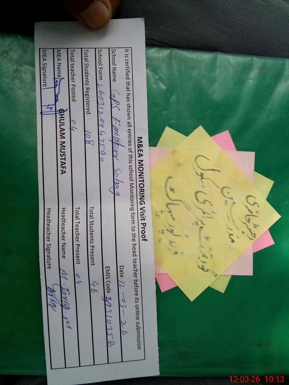 | EMIS Code: 39310358 | Name of School: GPS FARID PUR SOHAG | |||