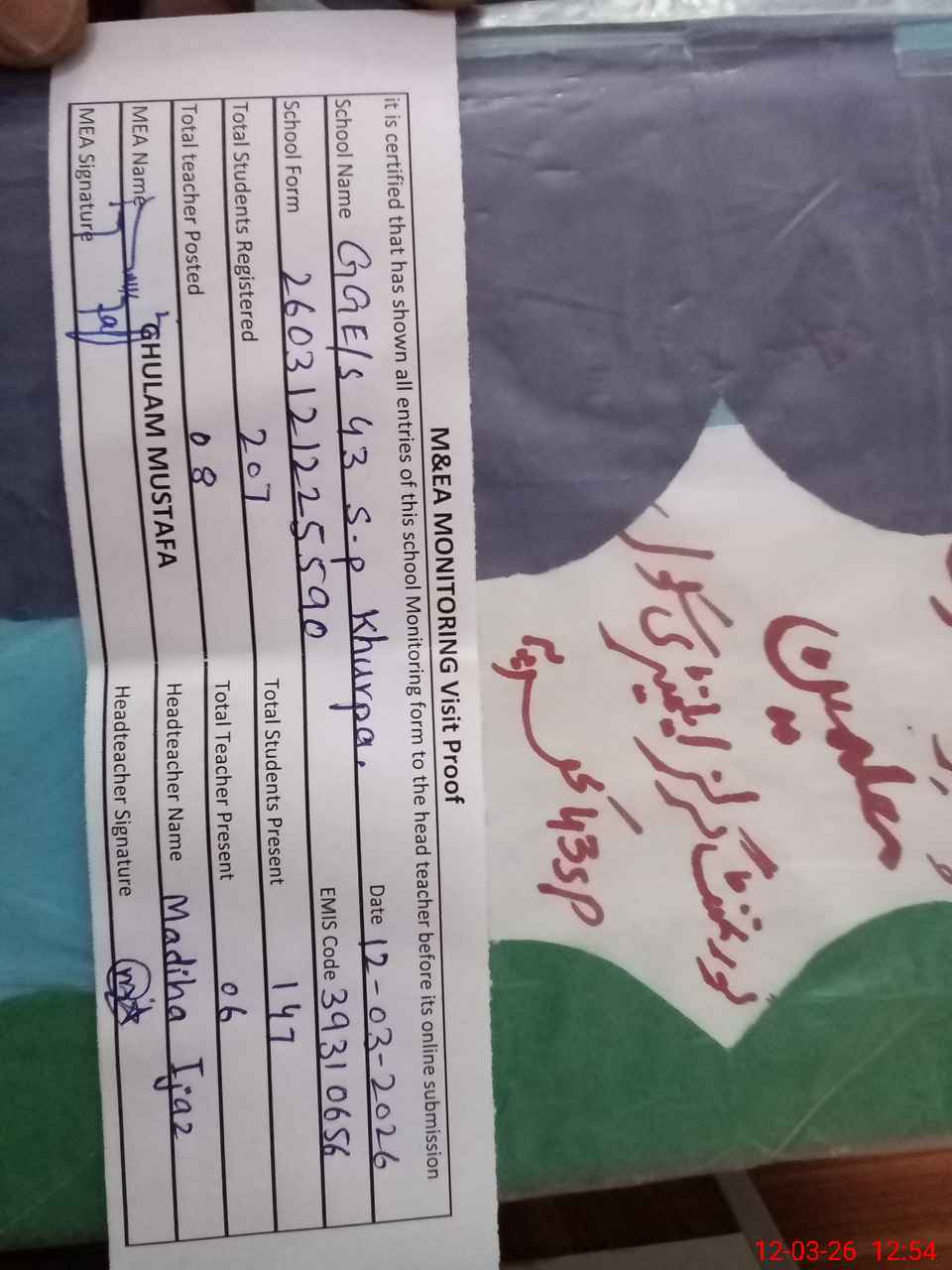 | EMIS Code: 39310656 | Name of School: GGES 43/SP KHURPA | |||
