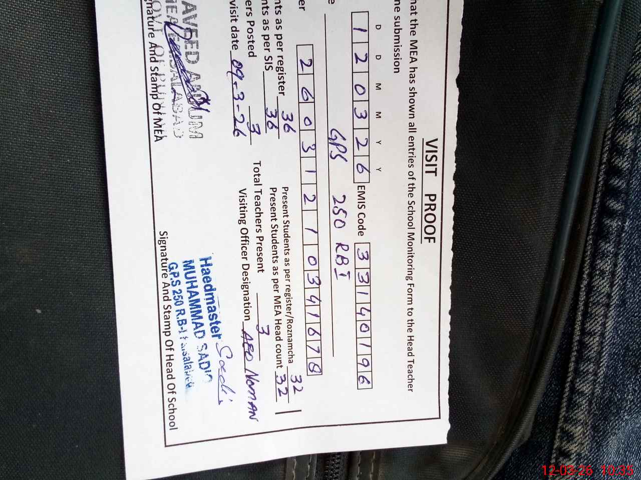 | Attendance Register | Head Teacher | MEA with School | Visit Proof |