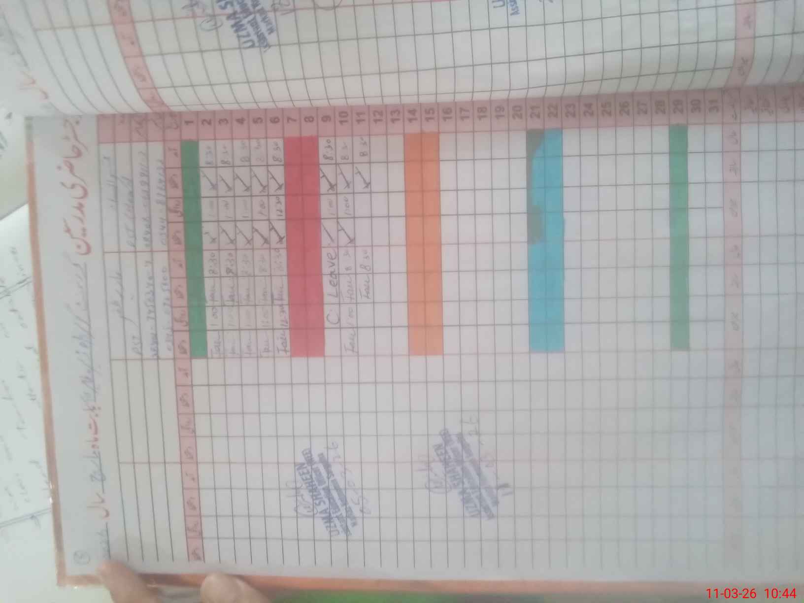 | Leave | Duty | Absent | Maternity | Medical | Ex- Pak |