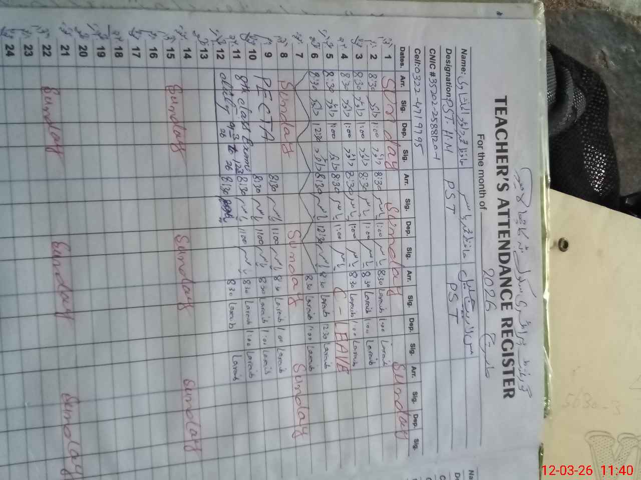 | 35**** | Ha**** Mu**** Da**** AlMa**** | PST Arts | Regular | 0 | 0 | 0 | 0 | 0 | 0 | 0 | 0 | 0 | Exam Duty |