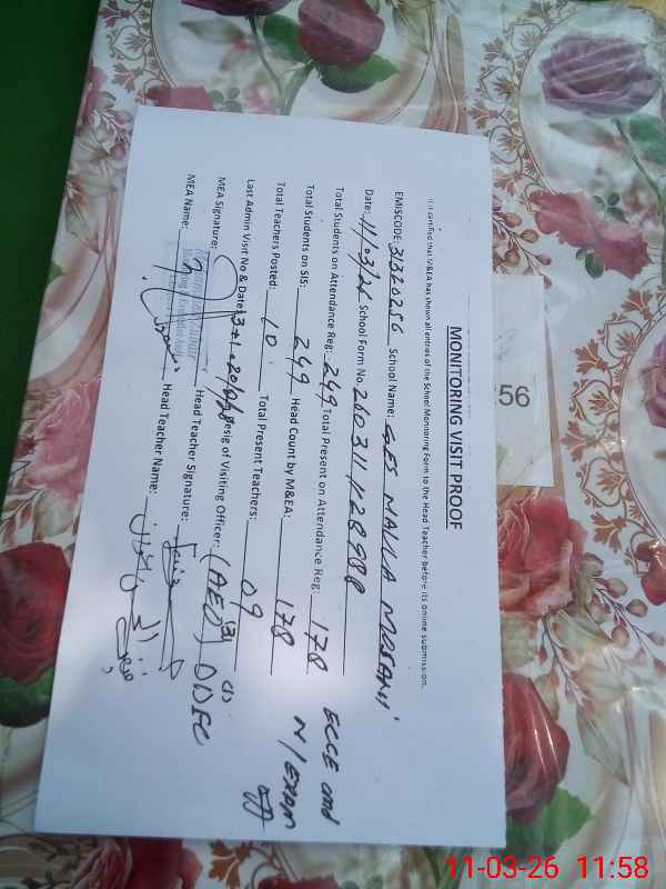 | Attendance Register | Head Teacher | MEA with School | Visit Proof |
