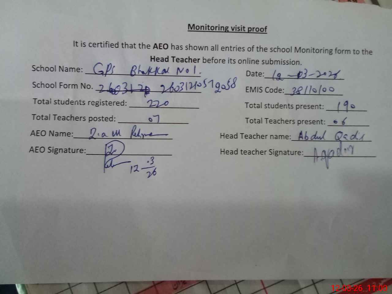 | EMIS Code: 38110100 | Name of School: GPS BHAKKAR NO 1 | |||
