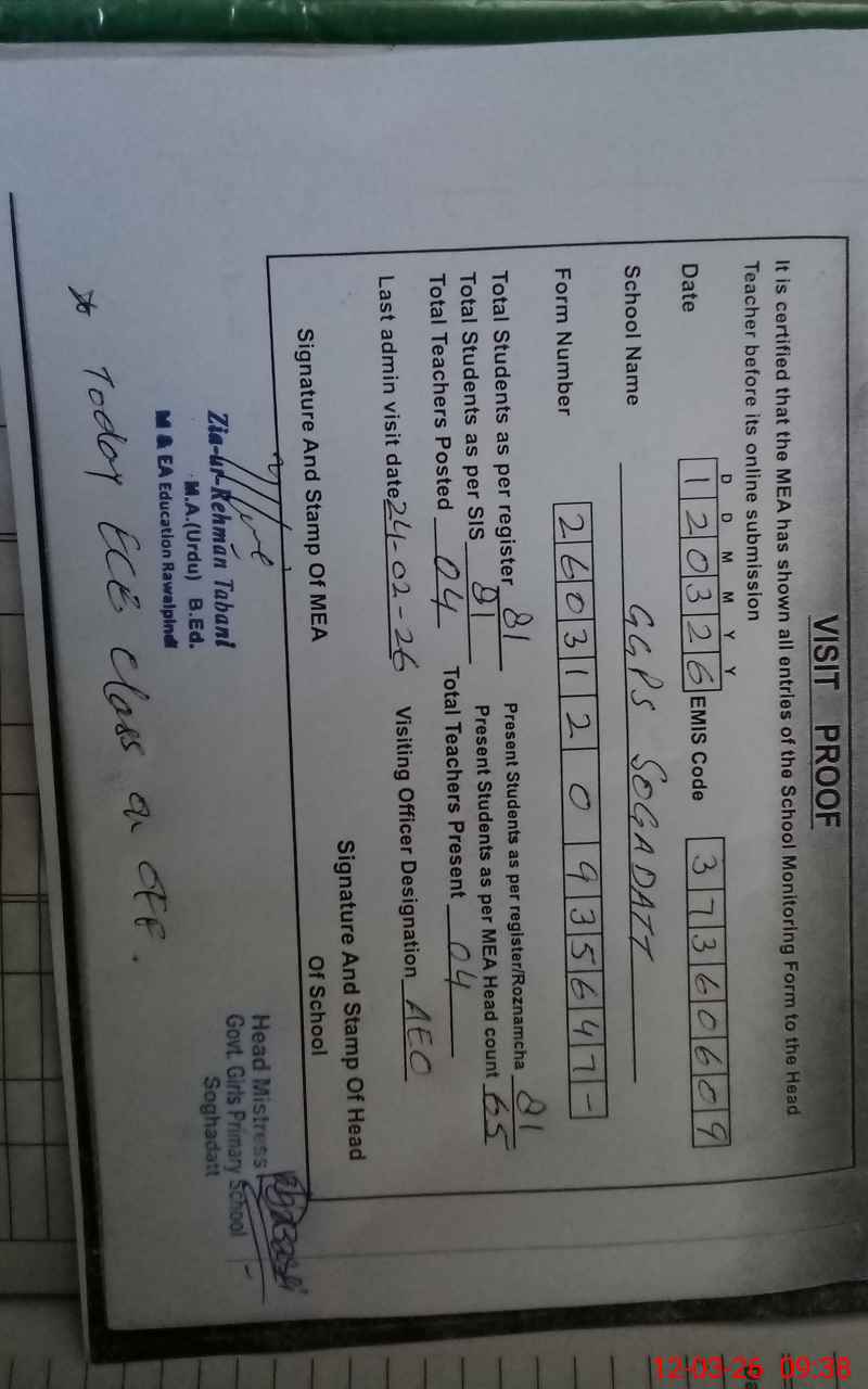 | EMIS Code: 37360609 | Name of School: GGPS SOGADATT | |||