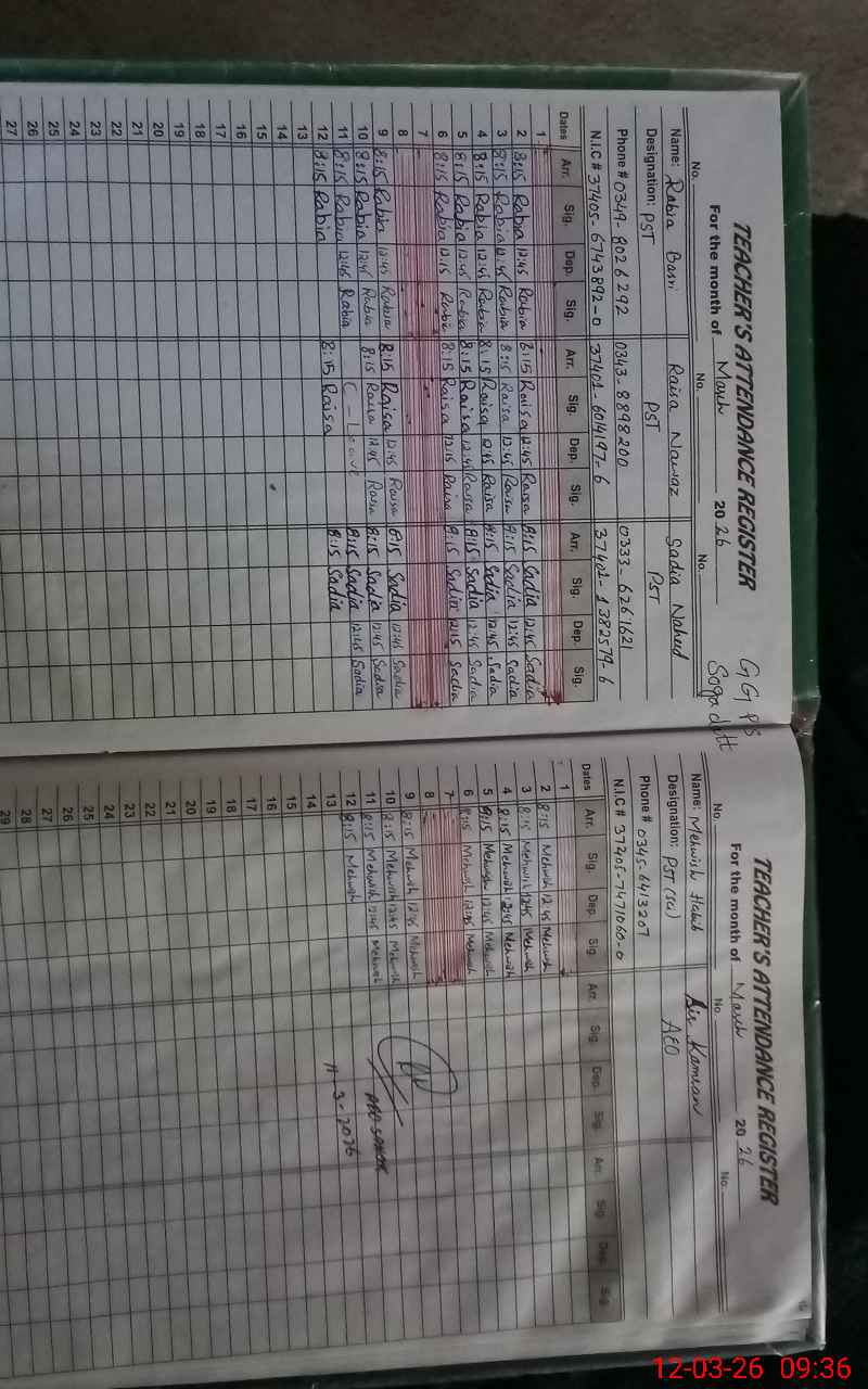 | Name: RA**** BA**** Designation: (School Headmaster's/Headmistress's) PST Phone/Cell Number: 03**** |