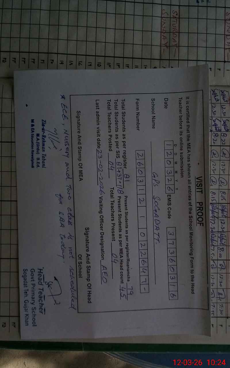 | Name: MO**** SH**** Designation: (School Headmaster's/Headmistress's) PST Phone/Cell Number: 03**** |