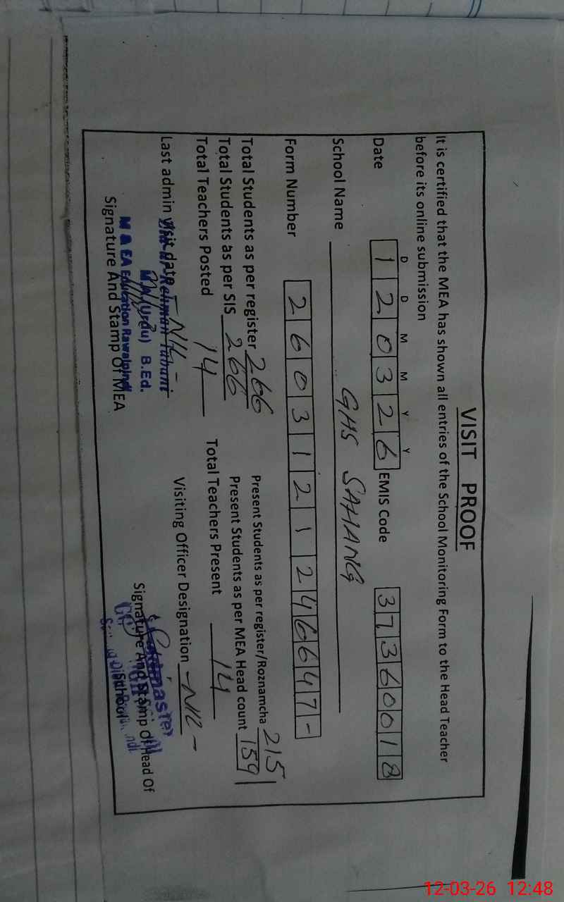 | EMIS Code: 37360018 | Name of School: GHS SAHANG | |||