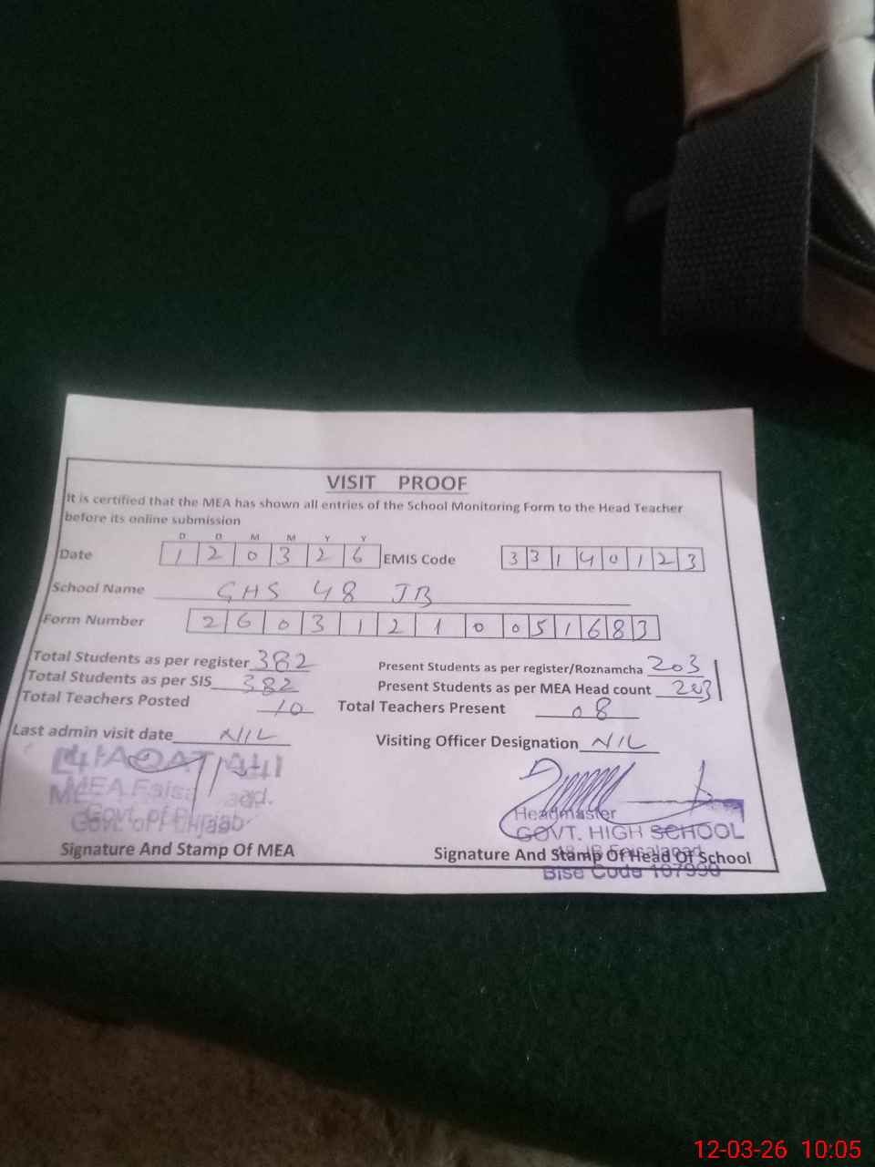 | EMIS Code: 33140123 | Name of School: GHS 48 JB | |||