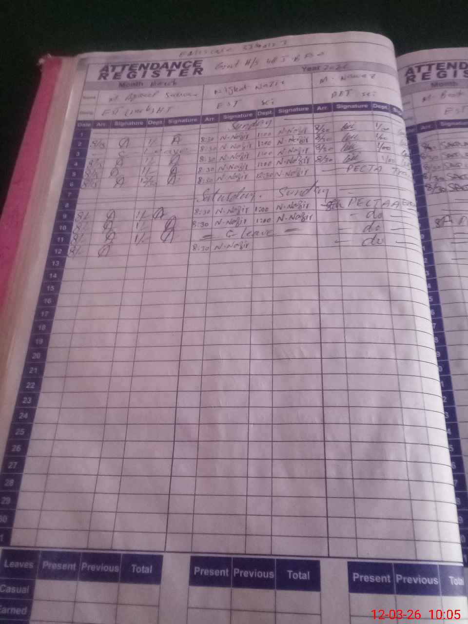 | 33**** | Mu**** Bo**** Sa**** | EST Science | Regular | 0 | 0 | 0 | 0 | 0 | 0 | 0 | 0 | 0 | Exam Duty |