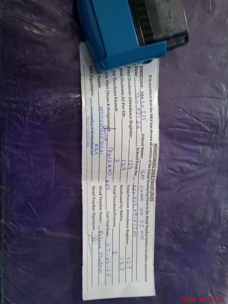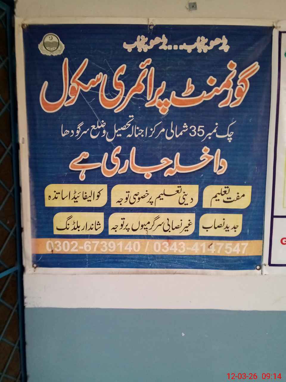 | EMIS Code: 38420335 | Name of School: GPS CHAK NO.35 NB | |||