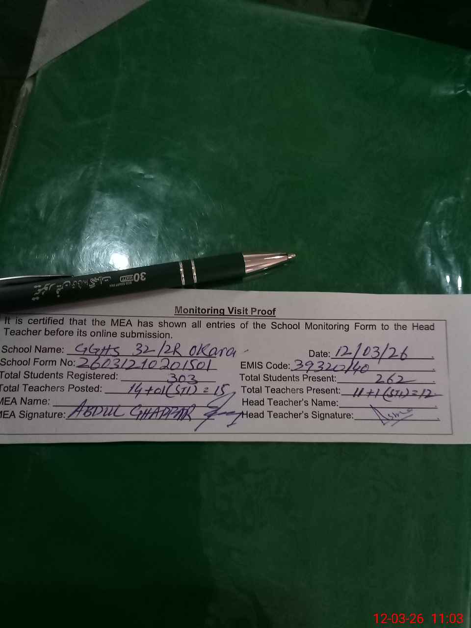 | EMIS Code: 39320140 | Name of School: GGHS 32/2-R OKARA | |||