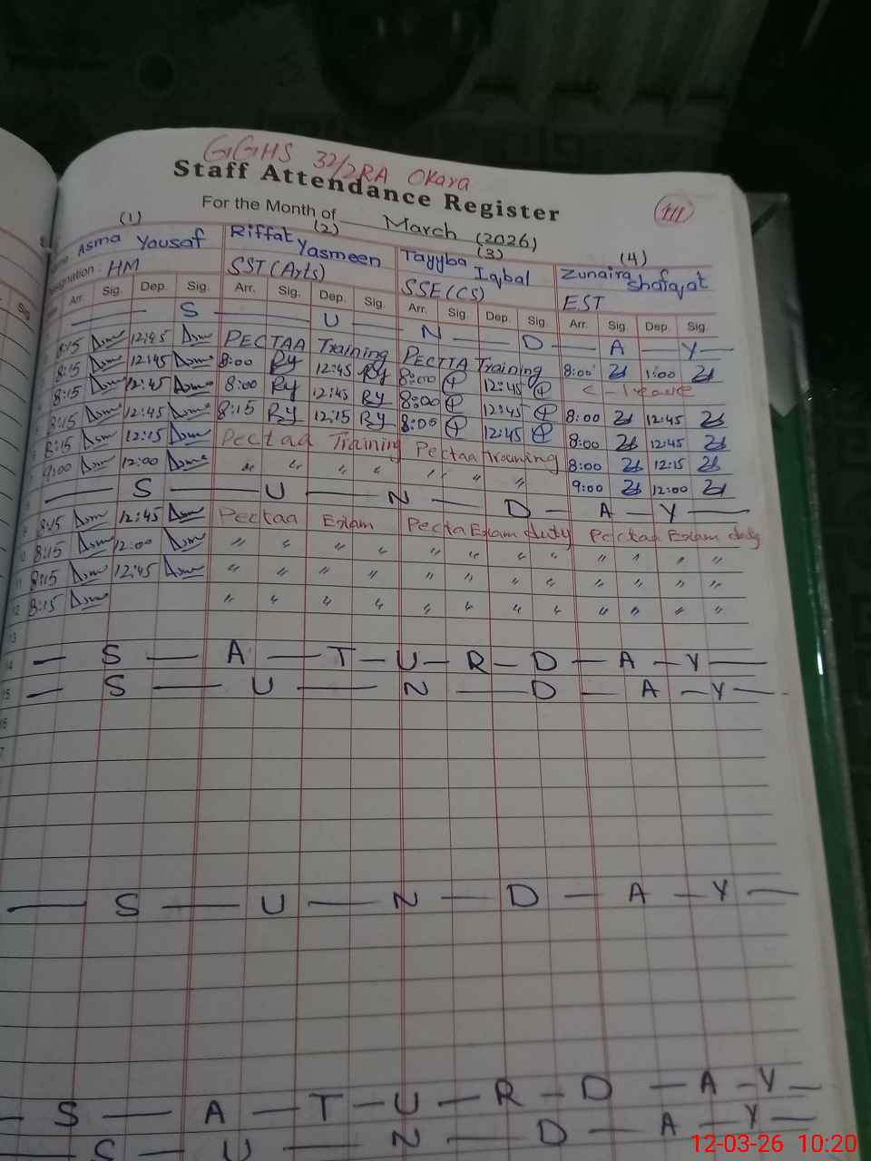 | 36**** | Is**** Ra**** | EST Science | Regular | 1 | 0 | 0 | 0 | 0 | 0 | 0 | 0 | 1 | Exam Duty |