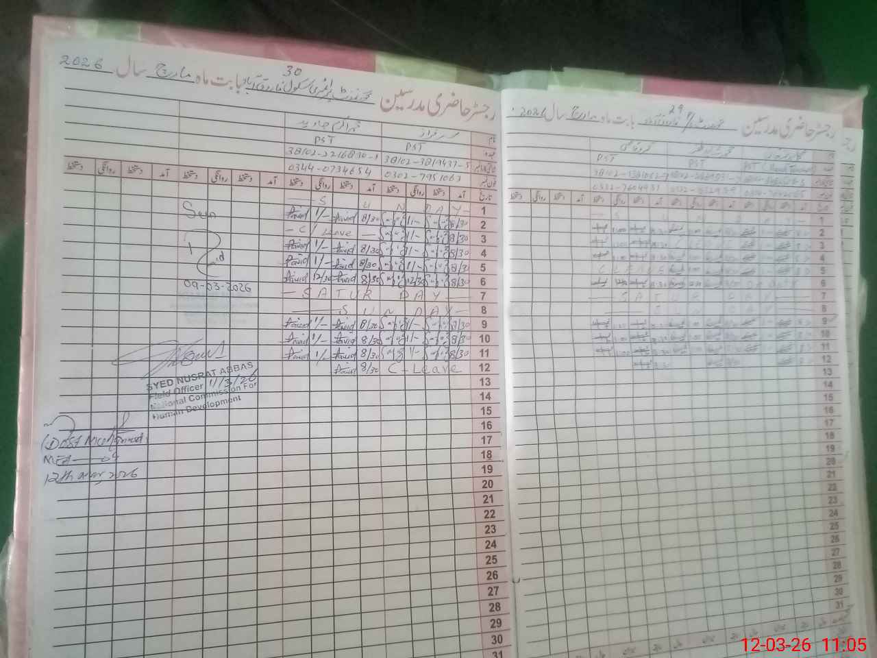 | CNIC | Full Name | Designation | R/C | Absence During Last Calender Month |
