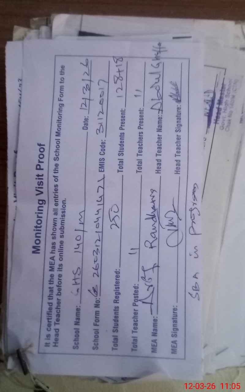 | EMIS Code: 31120017 | Name of School: GHS CHAK NO. 140 MURAD | |||