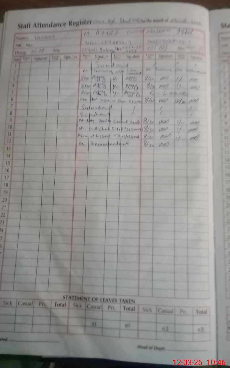 | 31**** | Mu**** Ay**** | SST Computer Science | Regular | 1 | 0 | 0 | 0 | 0 | 0 | 0 | 0 | 1 | Exam Duty |