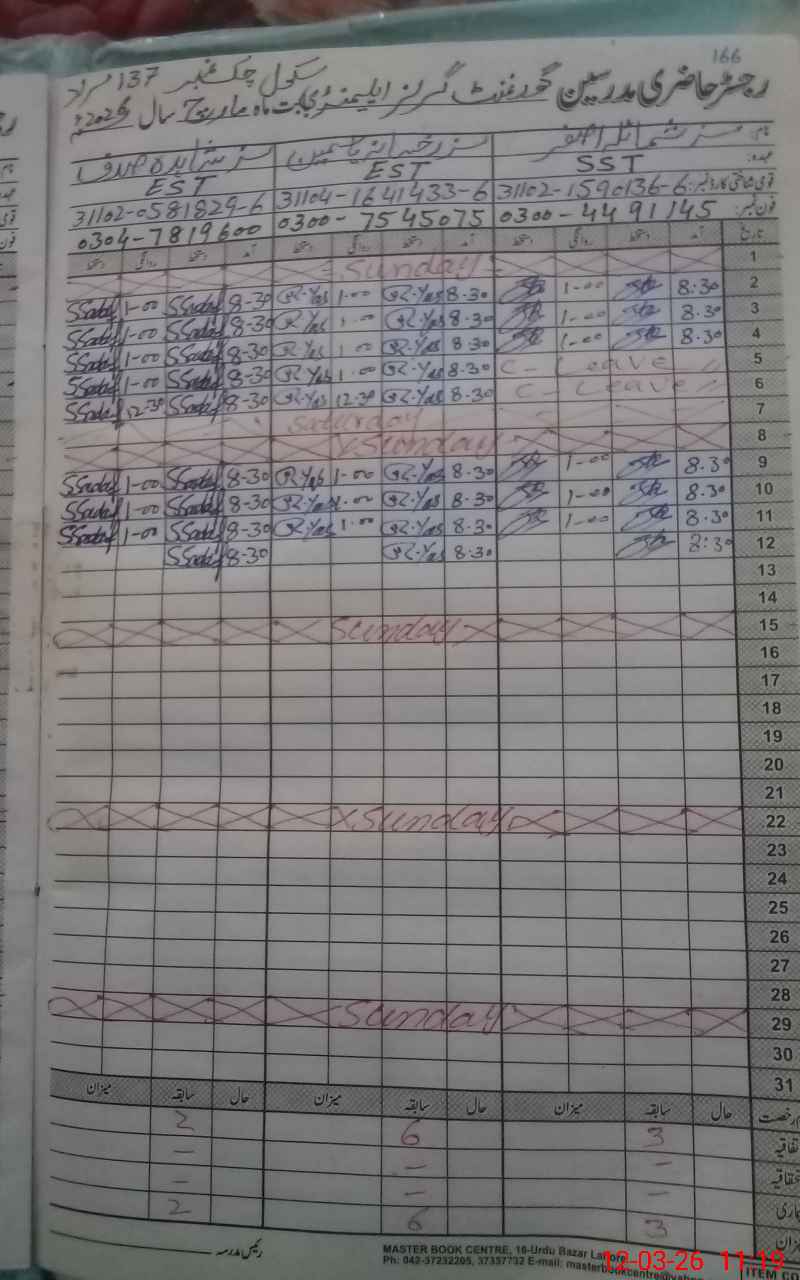 | Name: SH**** AS**** Designation: (School Headmaster's/Headmistress's) S.s T Arts Phone/Cell Number: 03**** |