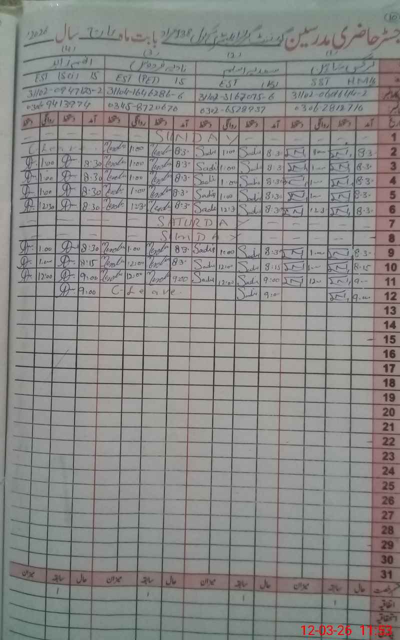 | Name: Na**** Sh**** Designation: (School Headmaster's/Headmistress's) SST Phone/Cell Number: 03**** |