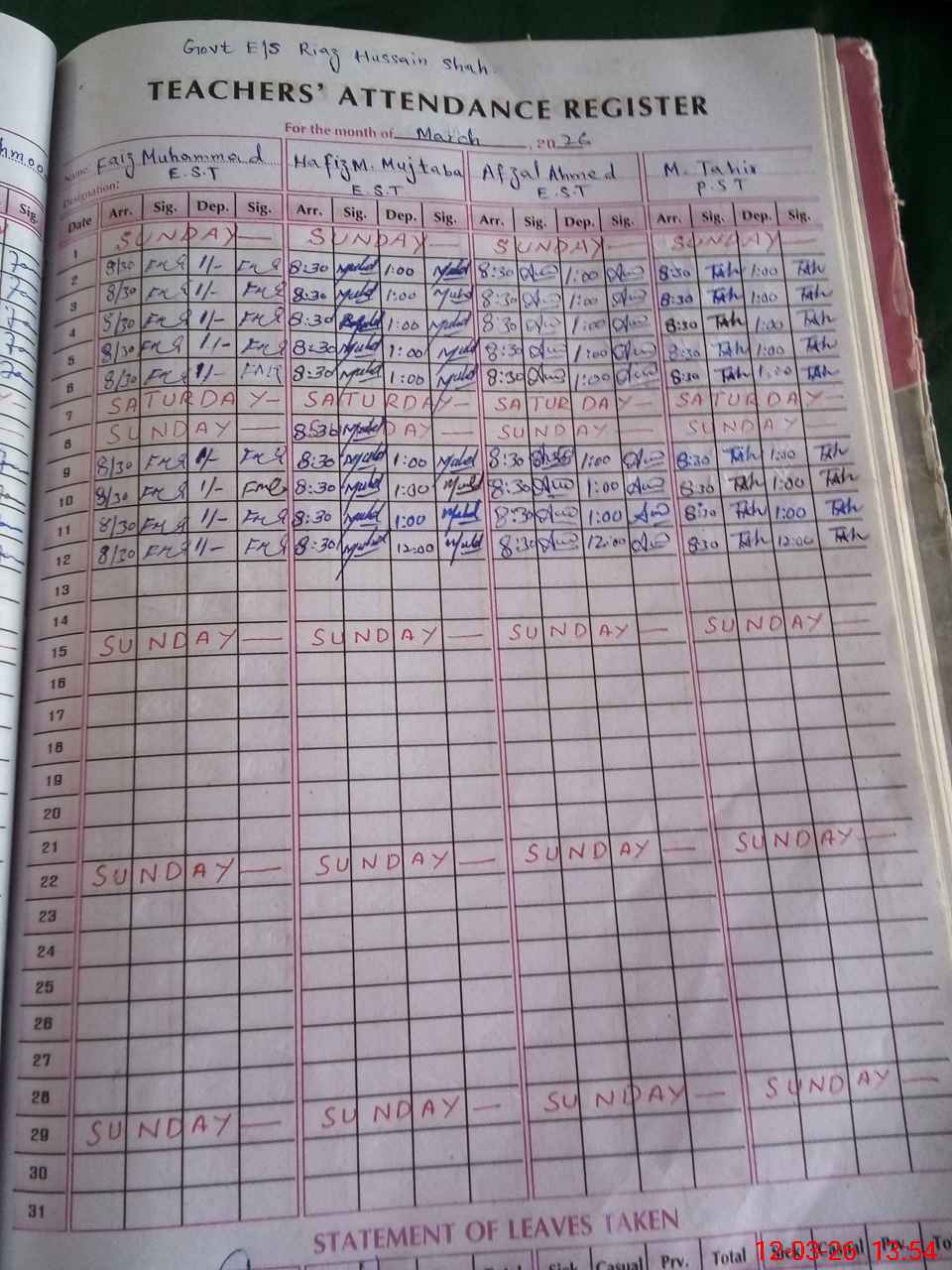 | EMIS Code: 31320963 | Name of School: GES RIAZ HUSSAIN SHAH | |||