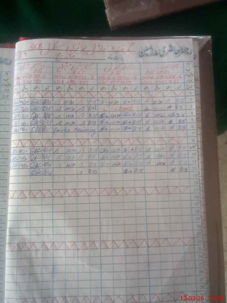 | Name: AS**** AN**** Designation: (School Headmaster's/Headmistress's) PST Phone/Cell Number: 03**** |