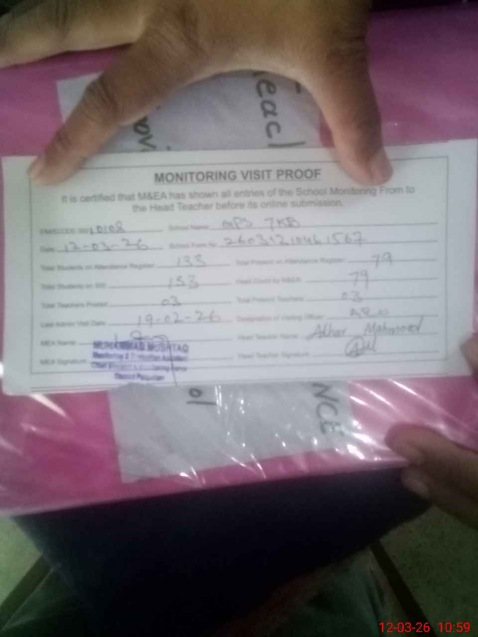 | Certified that this School was Inspected by the Undersigned MEA/DMO Today and the Information Stated Above is as Per Record. | |||||