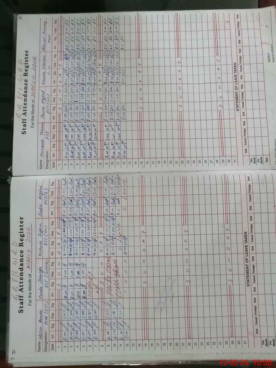 | 35**** | Fa**** Ja**** | EST Science | Regular | 0 | 0 | 0 | 0 | 0 | 0 | 0 | 0 | 0 | Exam Duty |